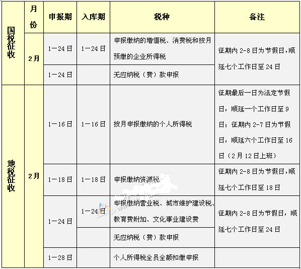 北京公司2月份納稅申報(bào)辦稅日期